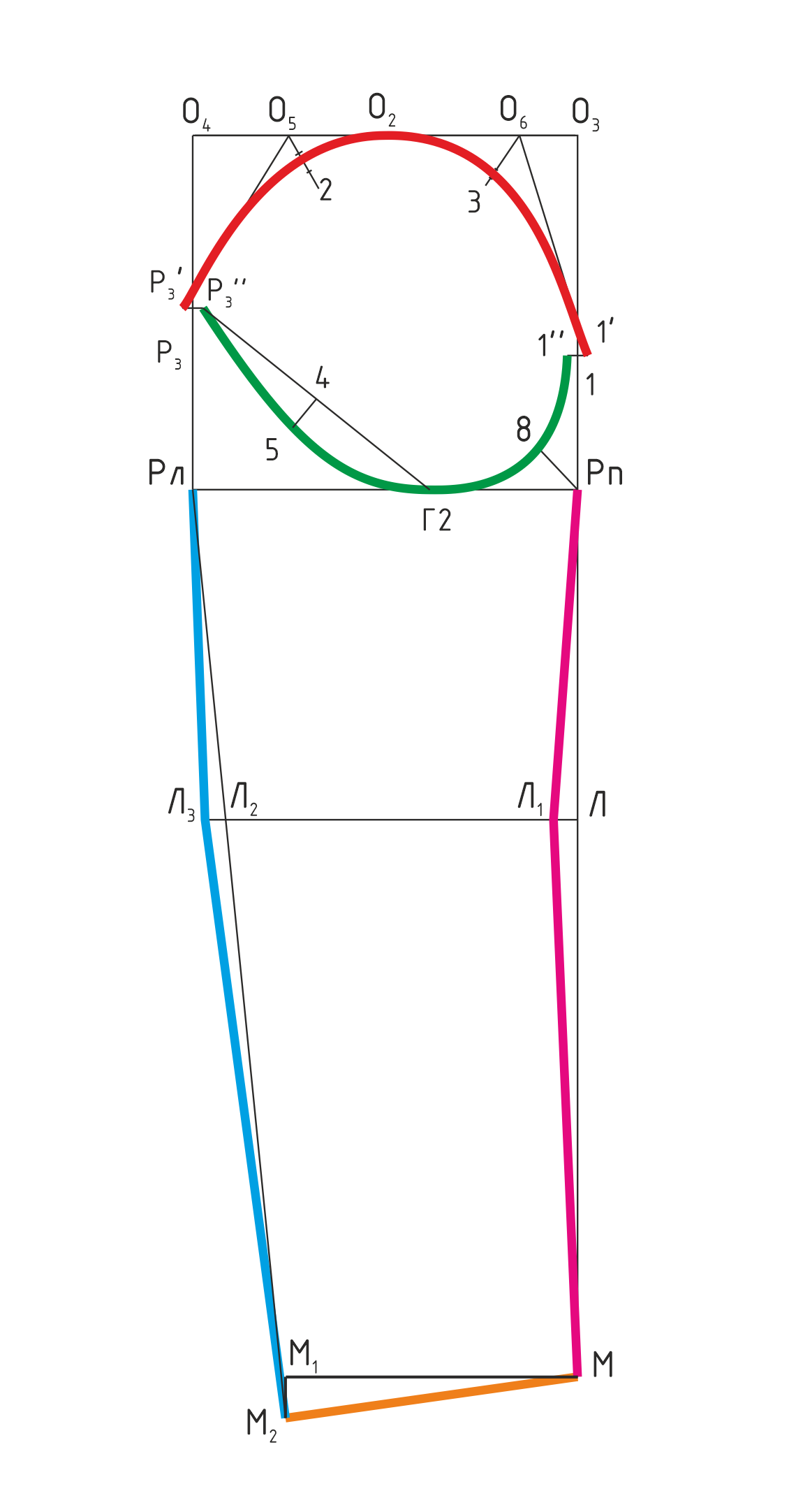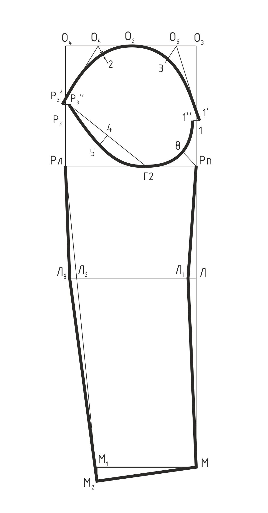 Построение оката рукава. Определение вспомогательных точек верхней части оката
