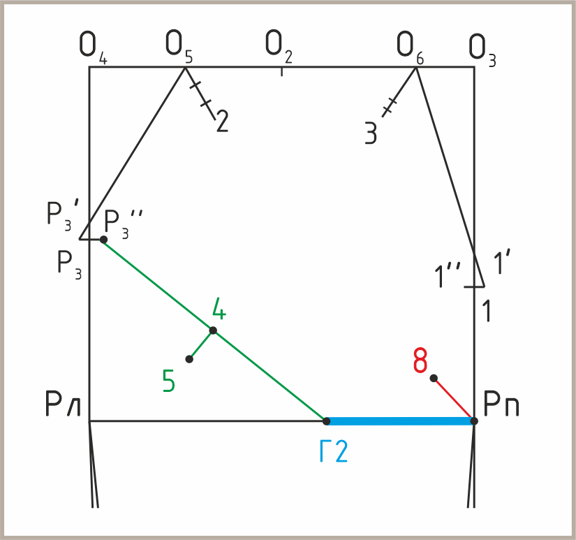3. Вспомогательная точка 8: Рп8 по биссектрисе =