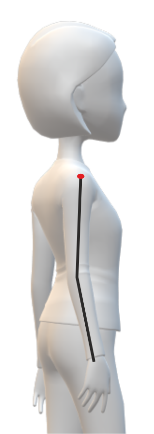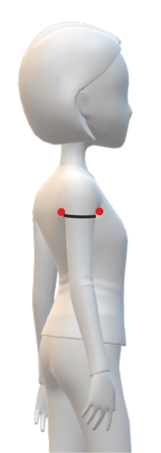 Длина рукава (Др) Снимается в один приём с Шп. Это расстояние от крайней плечевой точки до желаемой длины по отвесу с учетом изгиба руки в локте. Записывается в полном значении