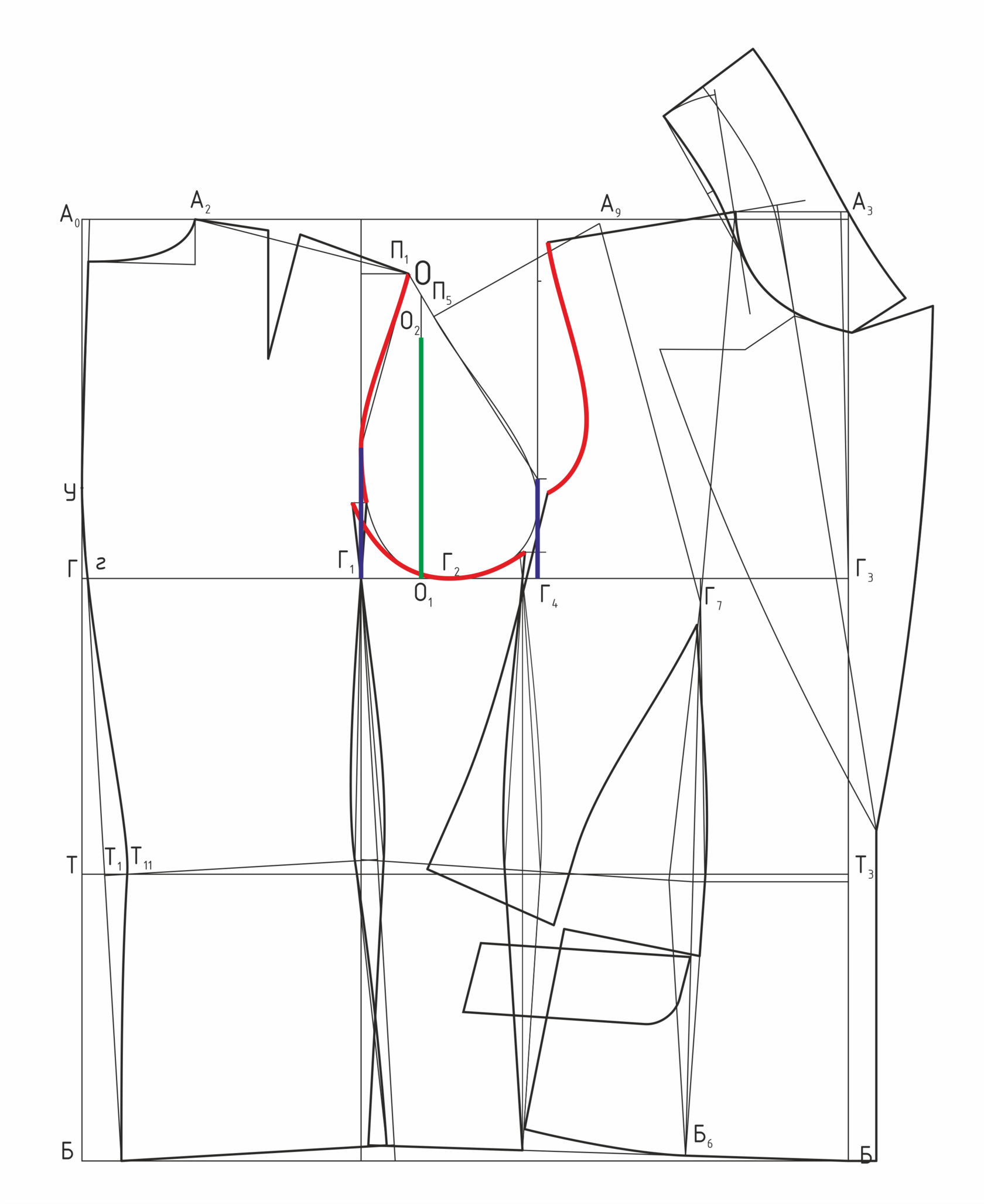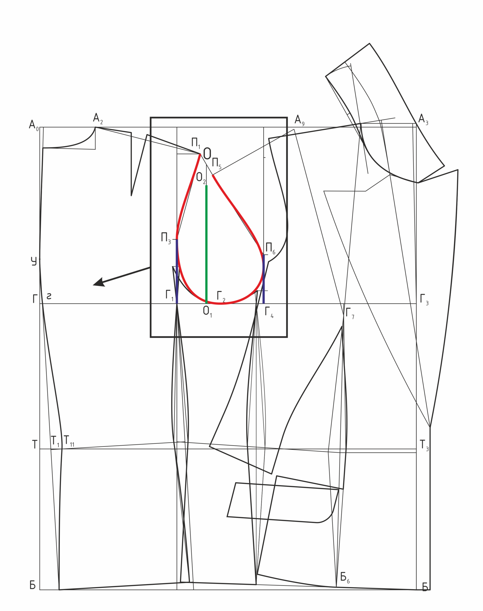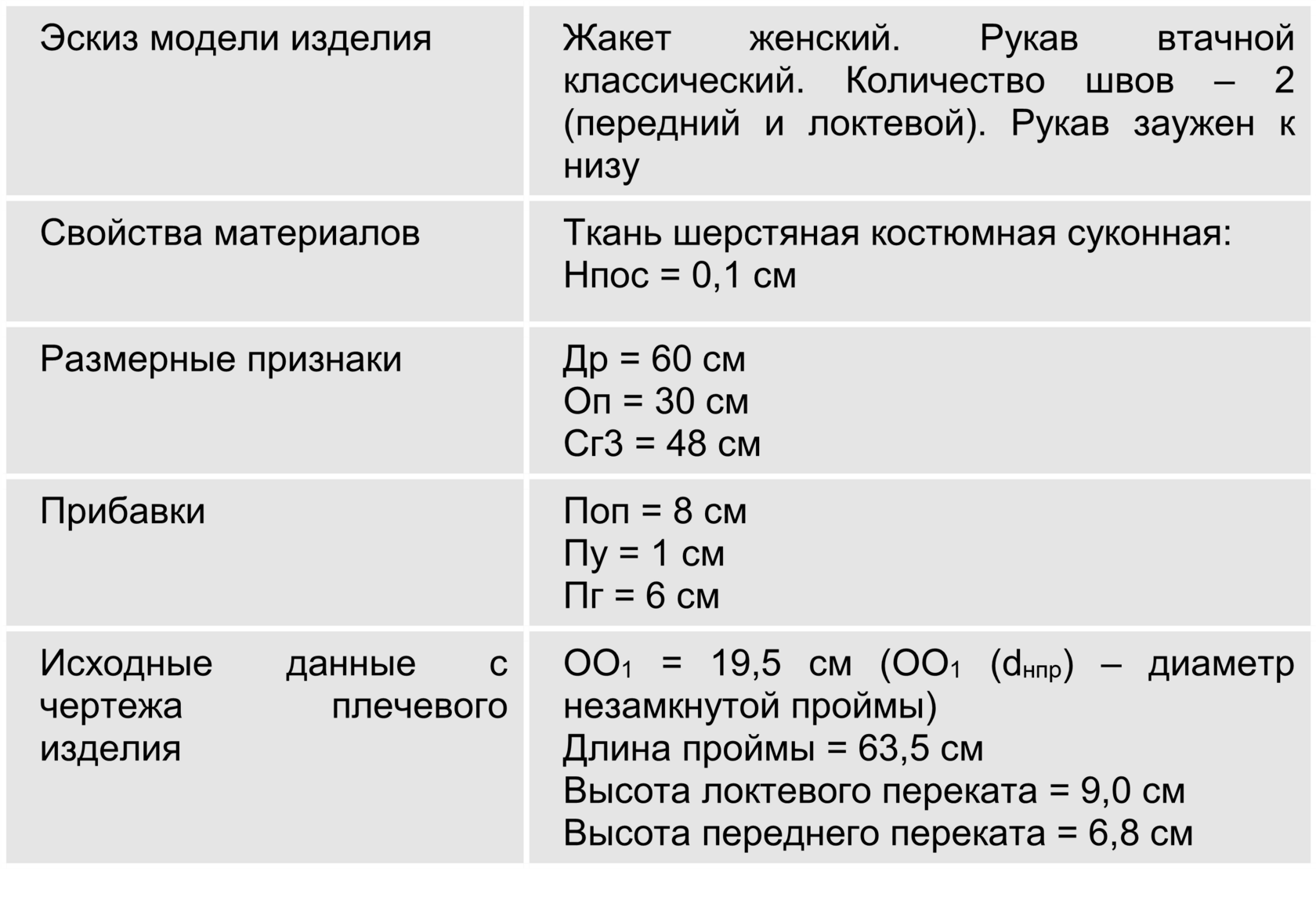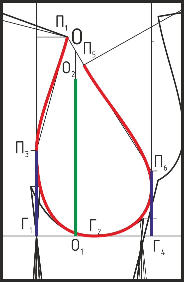 Величину посадки проверяют сразу после построения линии оката в основной схеме рукава. При этом, если посадка оказывается чрезмерной или недостаточной, параметры рукава нужно корректировать: уменьшать Вок или Поп при чрезмерной посадке, и увеличивать при недостаточной
