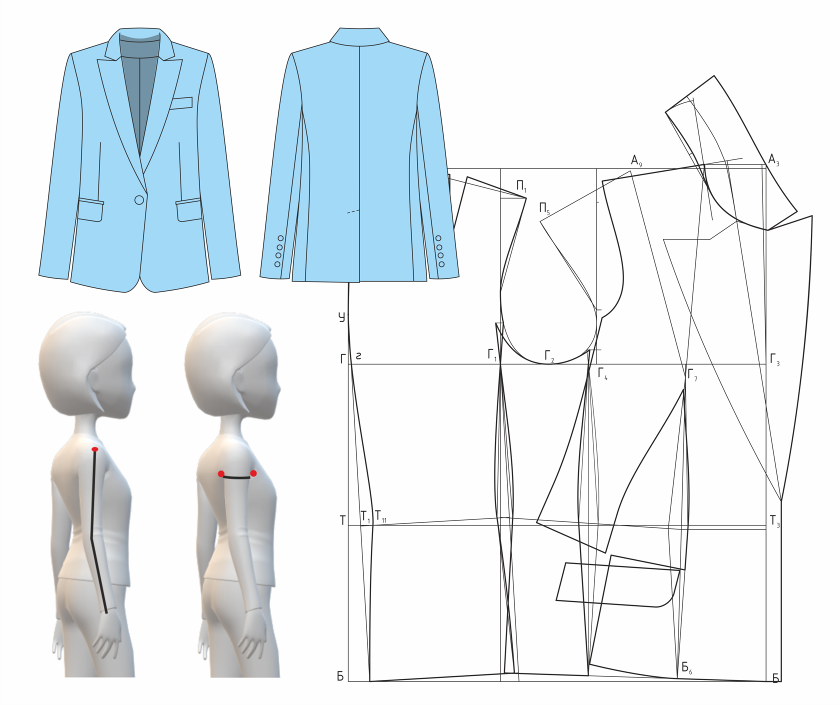 Полуобхват груди третий (Сг3) Измеряют полный обхват груди третий, а записывают половинный. Лента должна проходить горизонтально вокруг туловища через сосковые точки. Данный размерный признак нужен для определения Вок